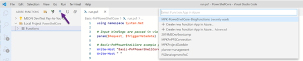 5. Open the run.ps1 of the function created earlier.
