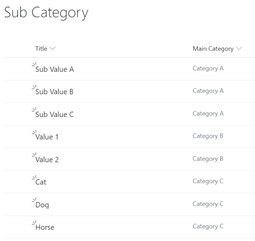 The basic setup is now done, but we are missing the cascading part. The category selection doesn’t filter the value list. We need to change the items selected for the second drop-down to make this happen.