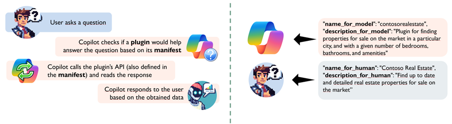 - The plugins are something that the users can decide to use by activating or de-activating them in the Copilot Pugin section. Copilot will choose when to use the active plugin based on the intent of the conversation.
