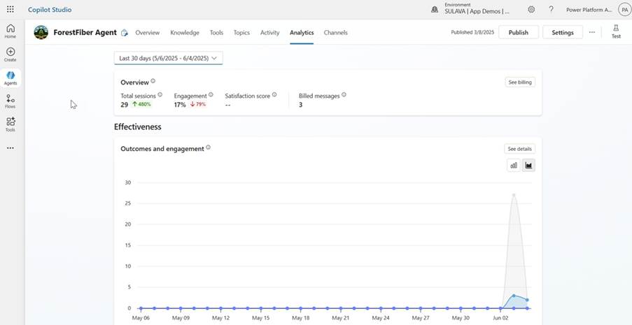 The advantage of these custom agents, published through the SharePoint Channel, is that they offer a lot more tools and capabilities to monitor the agents’ behavior and usage than normal SP Agents. You can use the same agent-level and Power Platform Admin Center tools as with other Copilot Studio Agents.