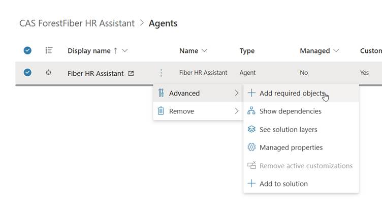 As a best practice, I recommend ensuring that all necessary information is added to the solution before starting the pipeline publishing process. This can be done through the solution-packed agent sections by selecting the agent and adding the required object.