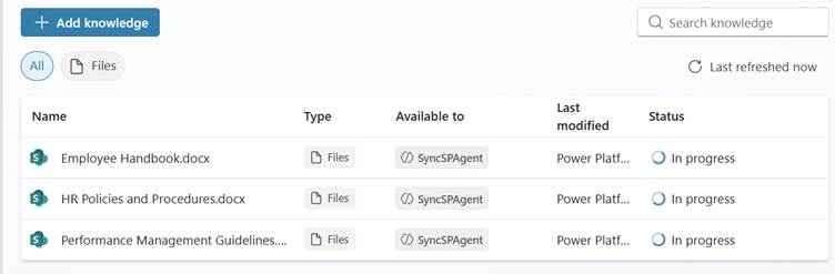 For content editors, the new sync functionality offers an easy way to maintain documents in SharePoint or OneDrive. All changes will be synced automatically and will be available to the agents. You can also sync a folder or document library. The changes (adding or deleting) to the documents will be reflected to the agents without the need to make changes and republish the agent.