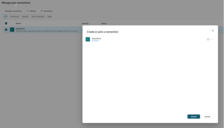 Unlike traditional SharePoint or OneDrive connections, there is one key consideration when using the sync method. Synchronization is achieved through a Power Platform connection.