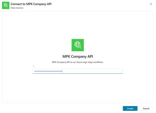 Make sure the end user knows the API Key from the API management service because they need it while creating the connection.