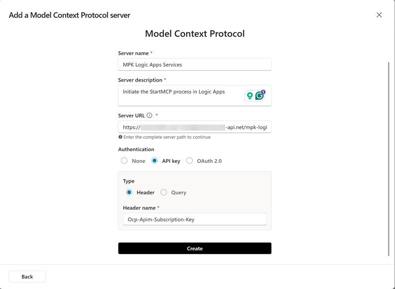 - In the left menu, under APIs, select MCP Servers > + Create MCP server.