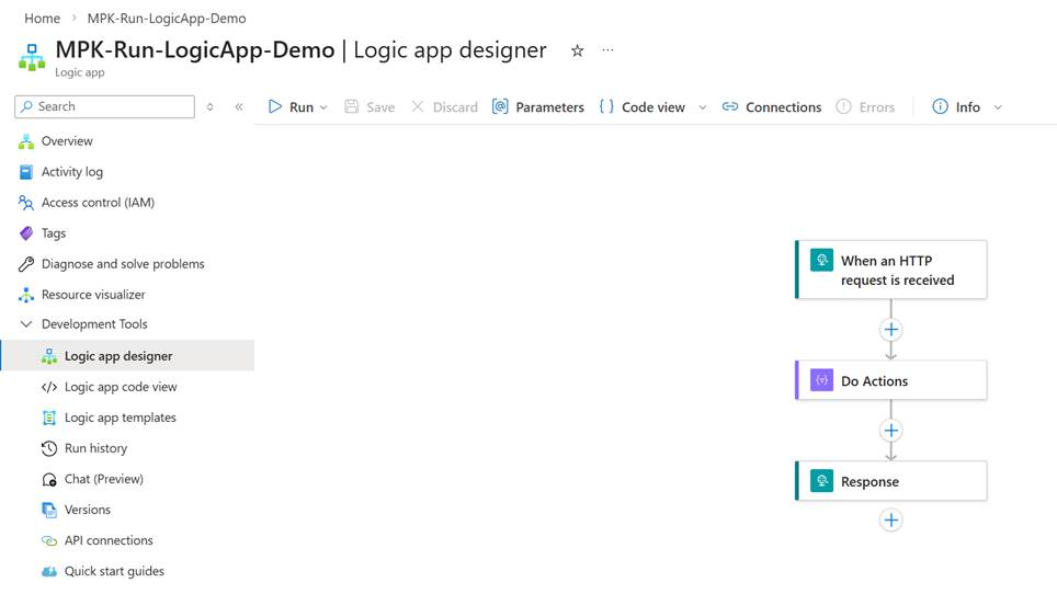 For this article, I created just a simple Logic App that is initialized with an HTTP request, makes a simple action, and returns a response. Of course, in real life, the functionality is often more complex. I also created a consumption-type Azure API Management service.