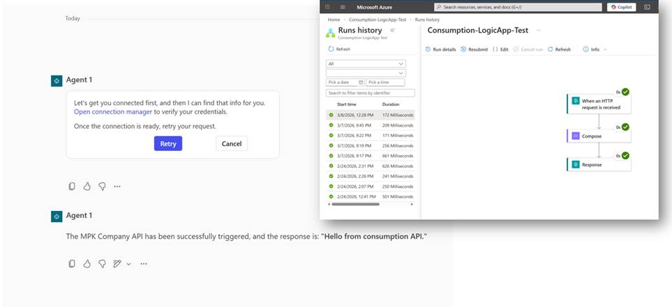 However, as agents start interacting with more complex business processes and enterprise systems, integration requirements often become more demanding. Workflows may need to orchestrate multiple systems, handle larger payloads, implement advanced error handling, or integrate with existing APIs in an organization’s Azure environment.